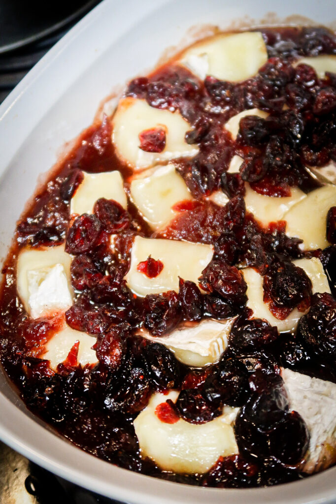 I stumbled upon a recipe video showing a wheel of brie melting in a delicious sauce made with fresh cranberries, and I just had to try it! Even though I live in a farming community, I had difficulty finding fresh cranberries at the store. No worries, though! I wanted to use canned cranberries instead, so I could whip it up anytime I wanted.